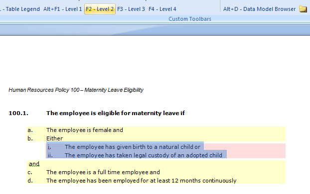 Continue in this fashion marking all of the remaining lines as Level 1, except for the two that start with i. and ii.