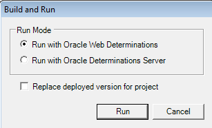 In the popup dialog box, select Run with Oracle Web Determinations and click on Run.