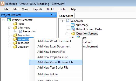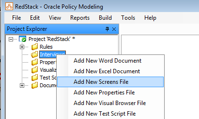 Let’s start by right clicking on the Interviews folder and selecting Add New Screens File from the popup context menu.