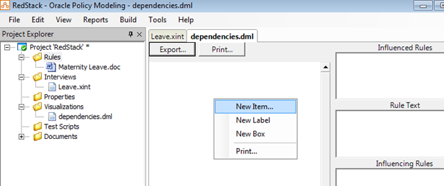 Let’s create a visualisation of our rulebase. Right click on the Visualizations folder and select Add New Visual Browser File from the popup menu.