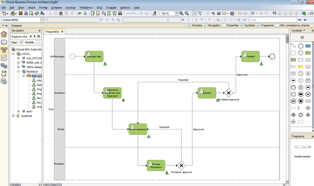 JDeveloper can open a process from BPA so that it can have the ‘implementation’ tasks completed and can be deployed into an execution environment.  This capability is enabled by installing an add-on from the BPA installation media.