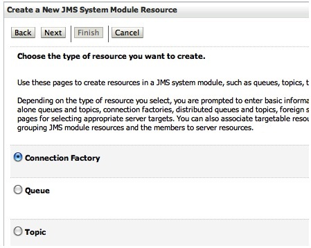 We need to create a Connection Factory first. Select Connection Factory from the list and click on Next.
