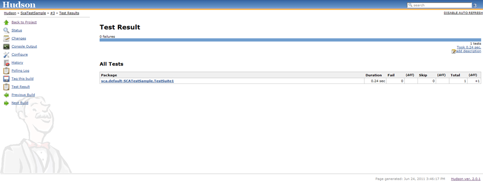 [scatest] <testsuite name="sca.default-SCATestSample.TestSuite1" tests="1" errors="0" failures="0" time="0.241"><properties><property name="db.type" value="oracle"/><property name="bpel.host.name" value="bpm"/><property name="soa.oracle.home" value="C:\Oracle\Middleware\Oracle_SOA1"/><property name="suite.start.date" value="2011-06-24T15:42:37.990+10:00"/><property name="suite.end.date" value="2011-06-24T15:42:38.231+10:00"/><property name="run.start.date" value="2011-06-24T15:42:37.990+10:00"/><property name="run.end.date" value="2011-06-24T15:42:38.231+10:00"/></properties><testcase name="Test1" classname="sca.default-SCATestSample.TestSuite1.Test1" time="0.241"/></testsuite>