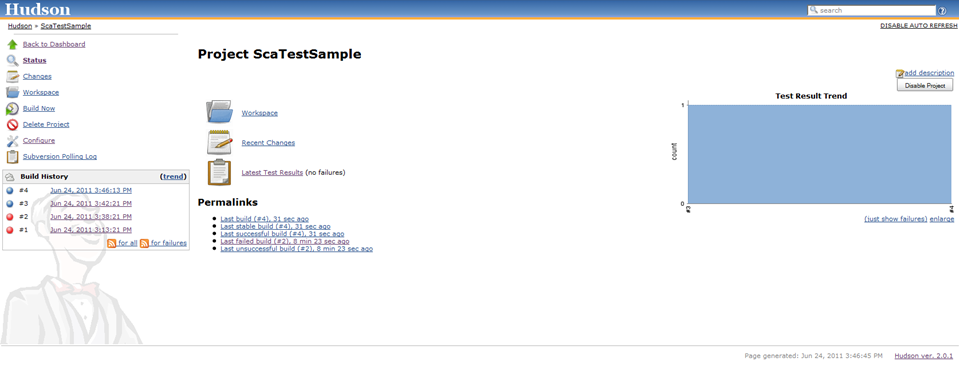 [INFO] Installing C:\hudson\jobs\ScaTestSample\workspace\target\ScaTestSample-1.0-SNAPSHOT.jar to C:\.m2\repository\ScaTestSample\ScaTestSample\1.0-SNAPSHOT\ScaTestSample-1.0-SNAPSHOT.jar