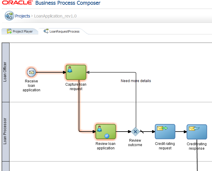 Player allows you to visualise how a process is going to work. When you start a Player session, you can map some users to each role in the process, and then start an instance of the process to see how it works.