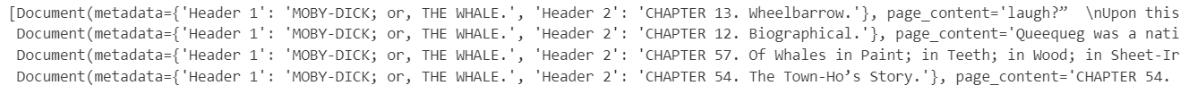 Note: Check out this page for more information about the available splitters. We are going to use the HTMLHeaderTextSplitter. Run this cell: