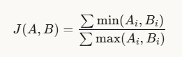 This is the formula for Jaccard similarity for continuous vectors. This is also known as the Tanimoto coefficient. It is the intersection divided by the union (or zero if the union is zero):