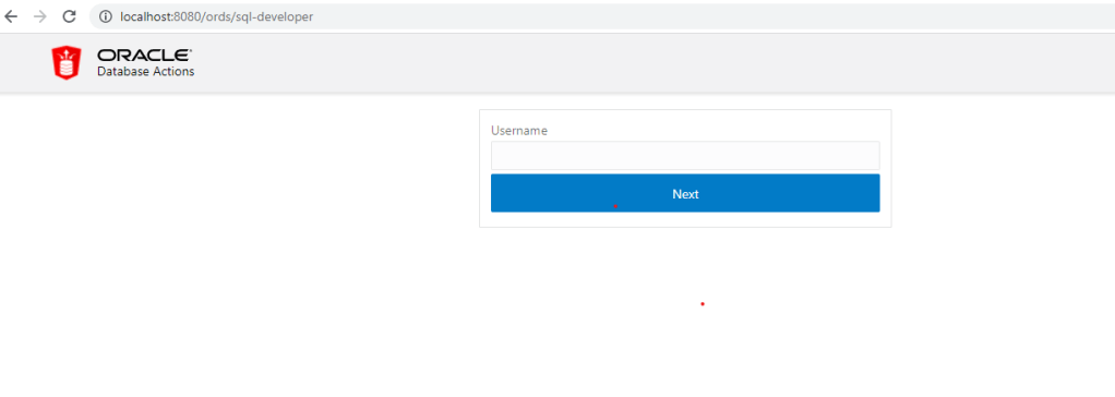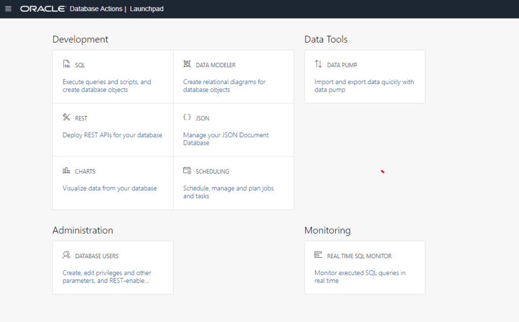 Enter your username – I used mark, and the press Next, and enter the password, I used Welcome123##. This will take you to the main “Database Actions” page: