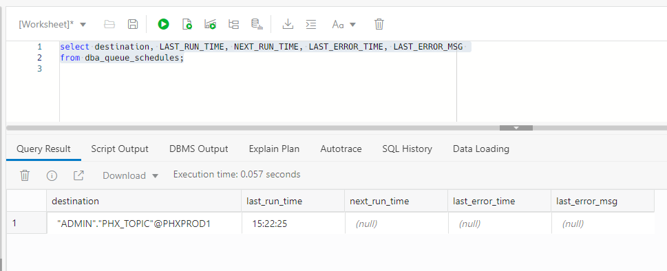 Let’s start with by creating a topic. We are going to need to know the database name for this – you can find that by running this query in your SQL worksheet: