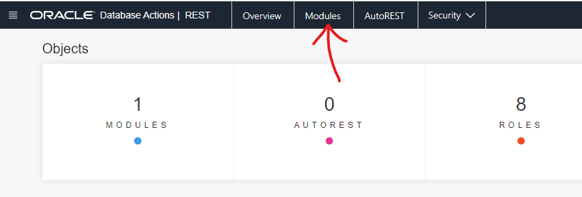 Give the module a name, I used mark and a base path, I used /api/. Since we are just playing here, set the “Protected by Privilege” to Not protected. Obviously, in real life, you’d set up authentication, for example using OAuth, which ORDS provides out of the box – but’s that another post š Finally, click on the “Create” button to create the module. It will now appear in the modules page: